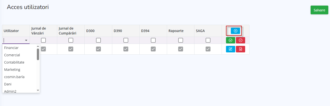 Pentru a adauga o linie noua pentru un anumit utilizator se merge pe butonul