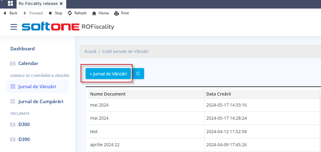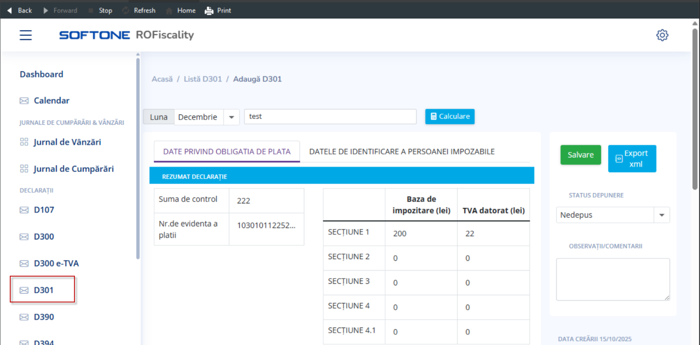 D301 este disponibila in RoFiscality, in functie de drepturile de acces din Setari.