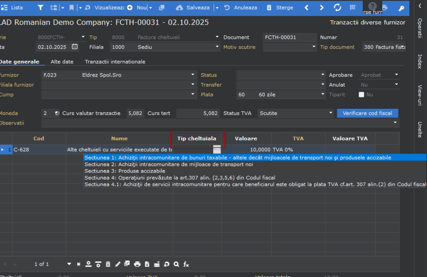 Documentele introduse in modulele Achizitii si Tranzactii diverse furnizori care au in linii completat campul ITELINES.SOEXPTYPE.